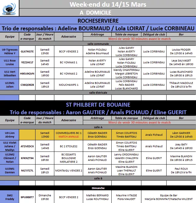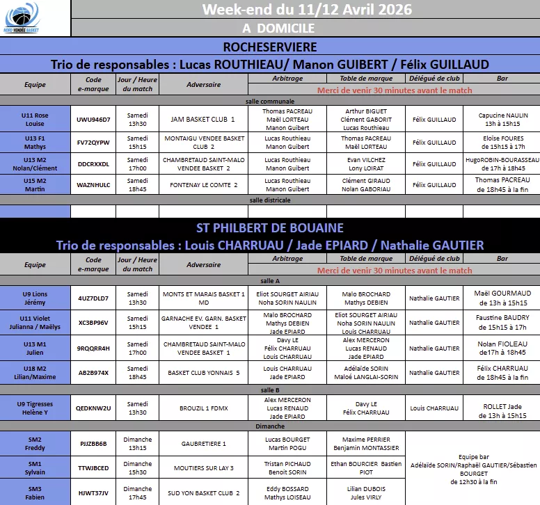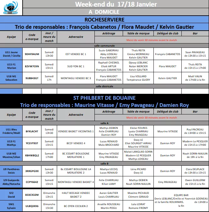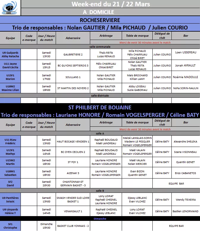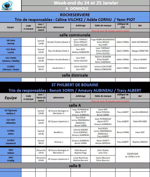 Pour que chacun puisse vivre pleinement sa saison sportive au sein du Nord Vendée Basket, il est important que chacun s’investisse et contribue au bon déroulement des rencontres.