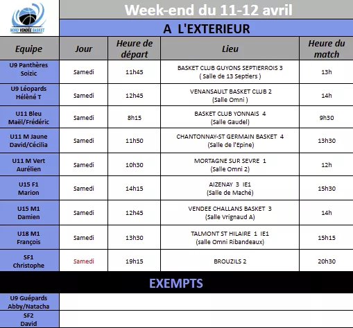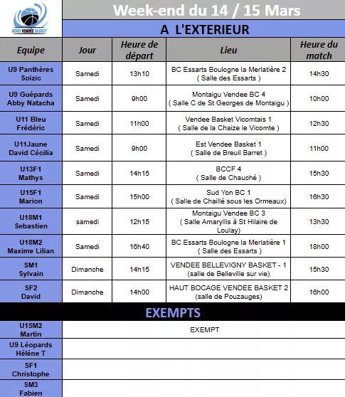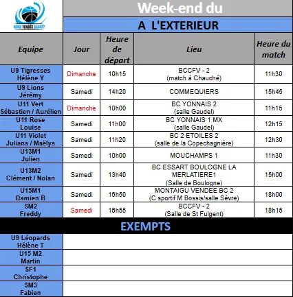 Vous trouverez sur cette page les différents plannings des week-ends à venir, que ce soit à domicile ou à l’extérieur.