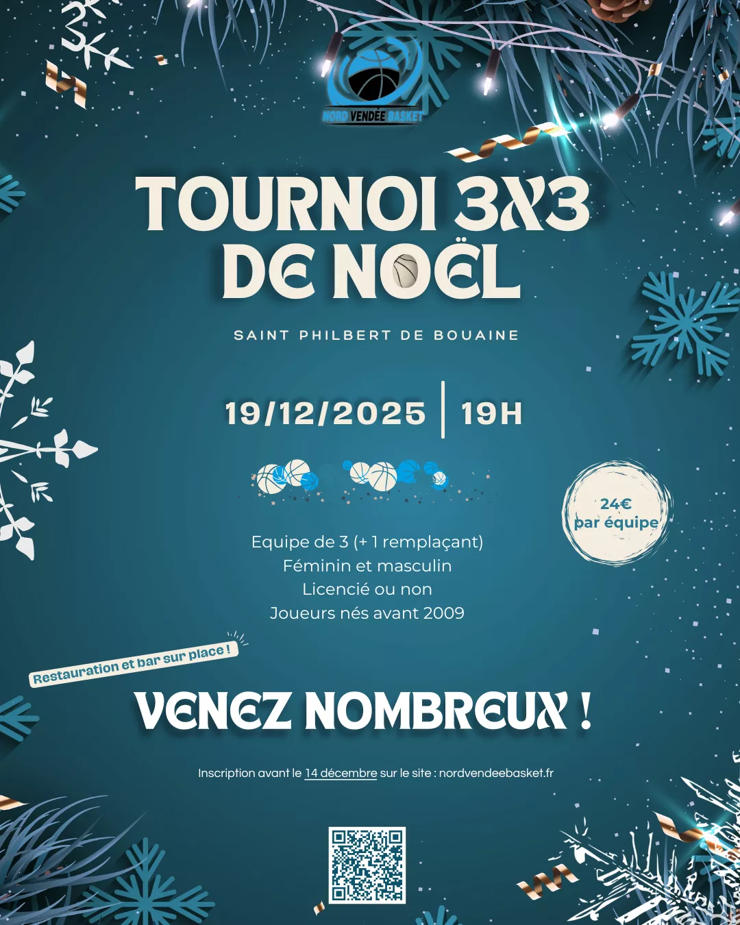Vendredi 19 décembre 2025 au soir, le Nord Vendée Basket a organisé son traditionnel Tournoi 3×3 de Noël à Saint-Philbert-de-Bouaine.